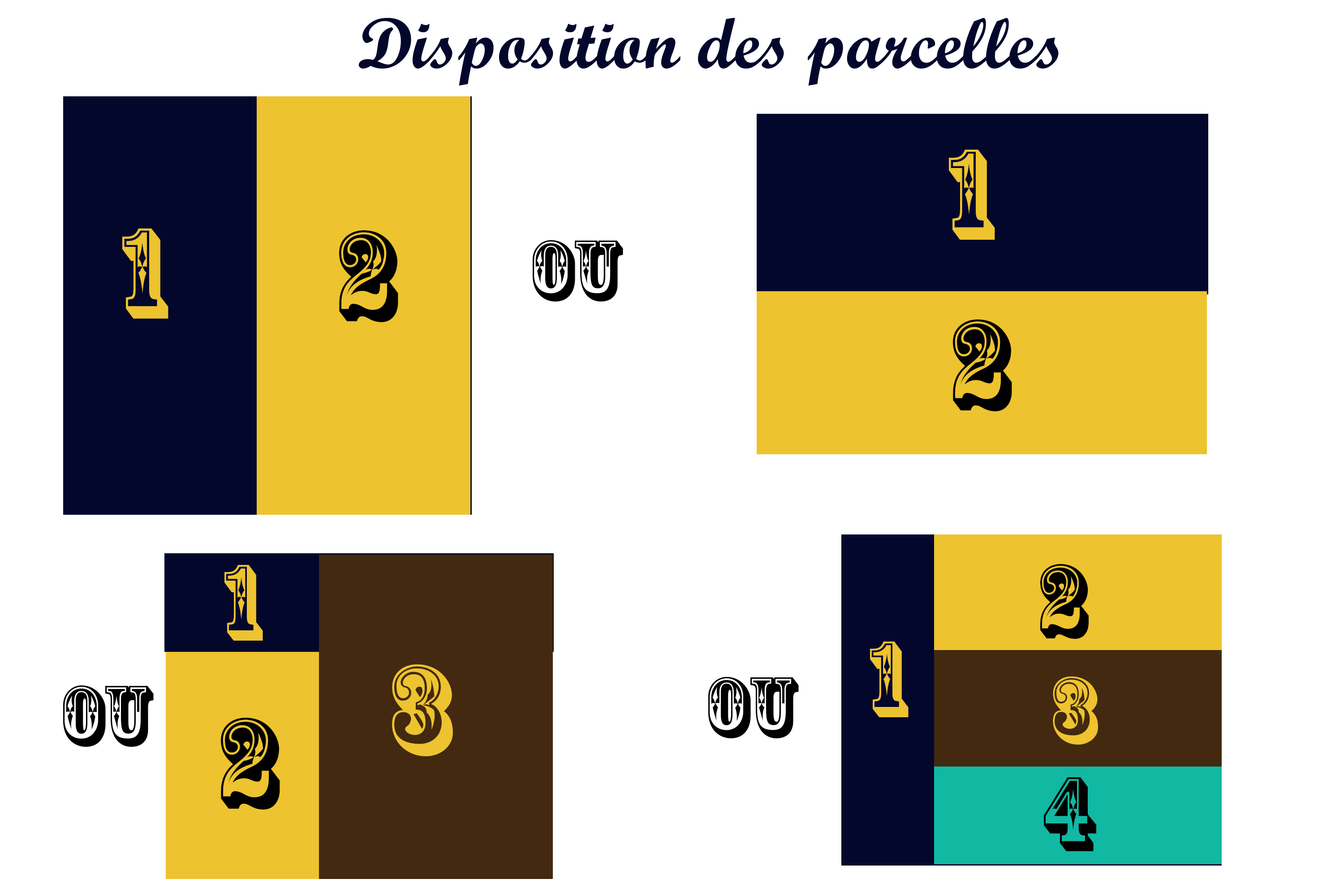 Avec ncol = 2 et nrow = 2, on obtient 4 parcelles sous la forme d’une matrice 2x2, mais ncol = 1 et nrow = 4, donnent 4 parcelles sous la forme d’une matrice 4x1.